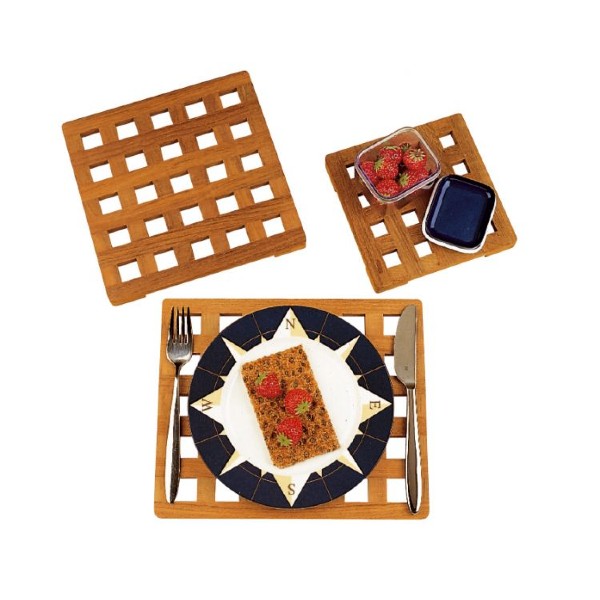 Beautifully made with a grating design, these teak place mats come in three different sizes.