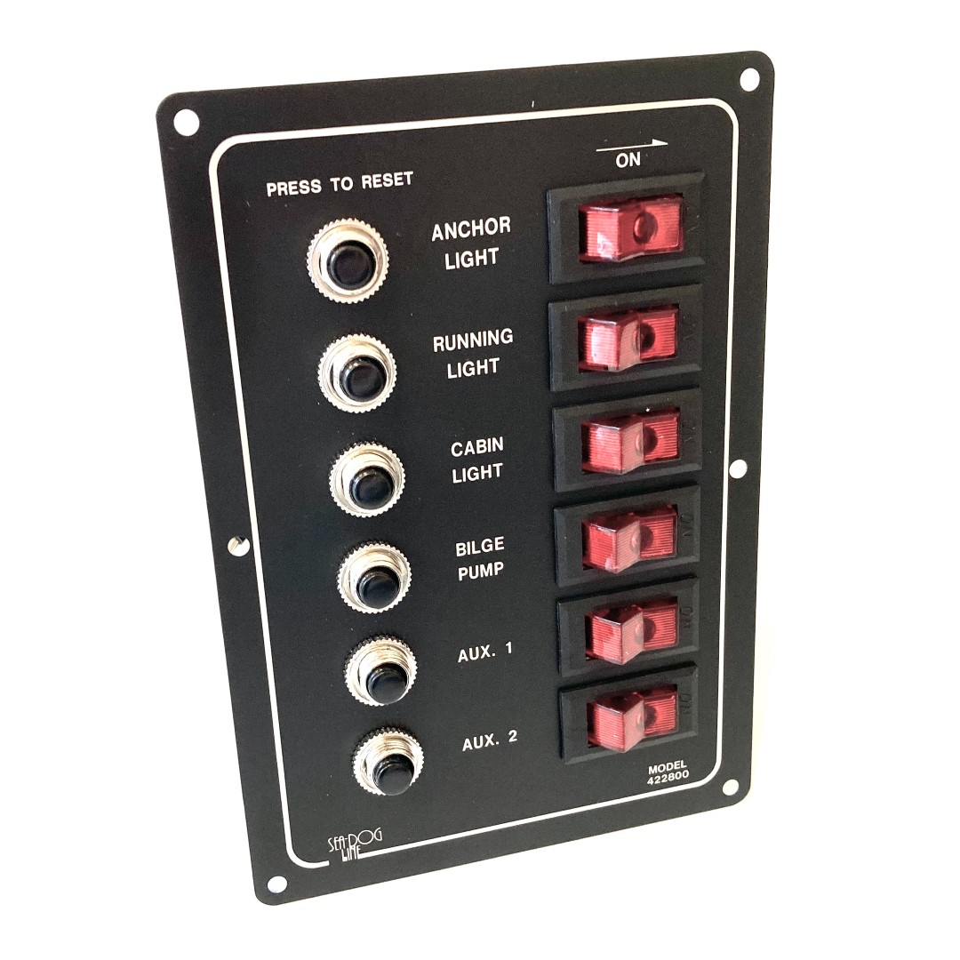 Aluminium 6 Switch Breaker Panel 12vVertical Aluminium Breaker Panel. 12v DC 37amp Max. Protected by circuit breakers. - 1 x 10amp, 1 x 8amp, 2 x 6amp & 2 x 3amp. Dimensions - 165mm x 114mmAdditionalAdditionalBrand10/10A - C Quip