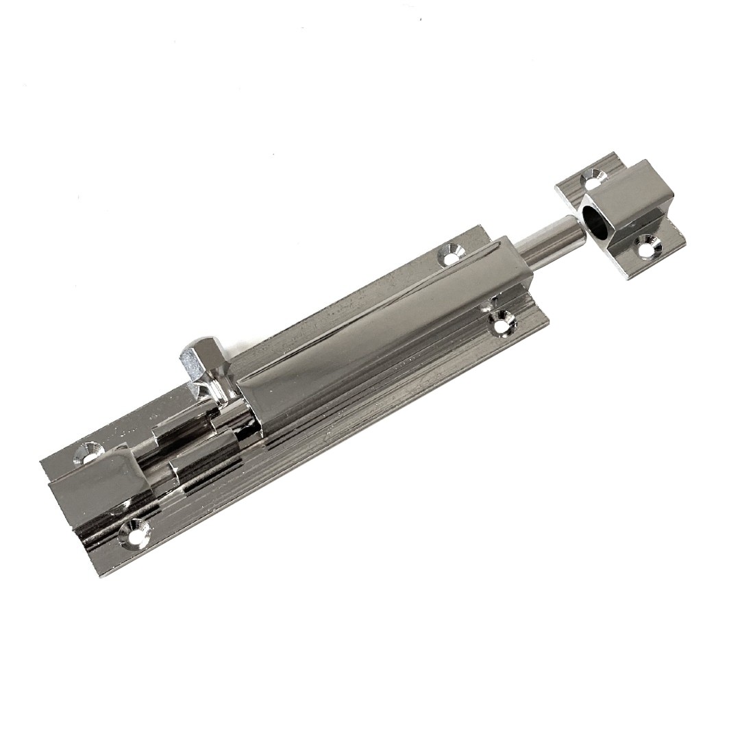Chromed brass barrel bolt, available in three different sizes.