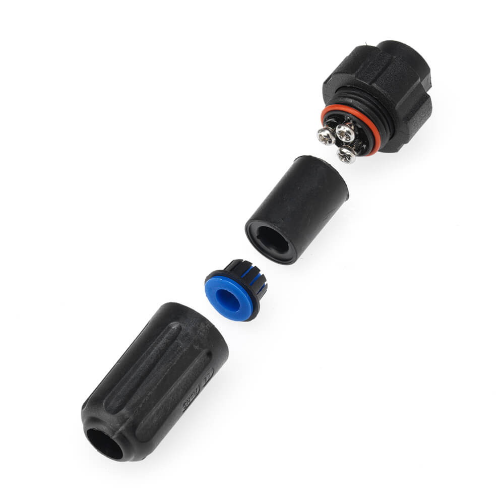 The screw terminal in-line male plug is available in : 2 pin, 3 pin and 4 pin variants.