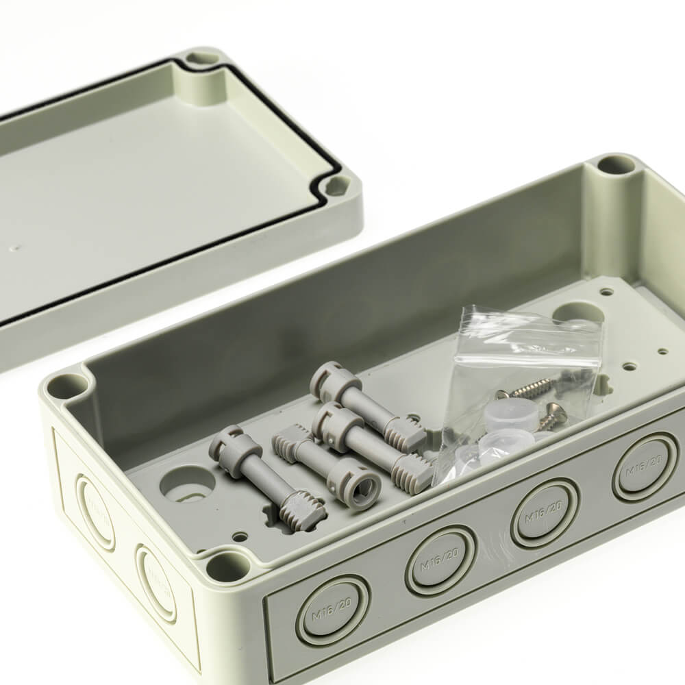 These waterproof electrical junction box's are environmentally rated, have a range of potential port options that can be punched to fit the double-membrane seal cable glands. IP67 rated enclosure.