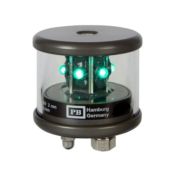 Peters & Bey Type 580 navigation lights are suitable for vessels <50m. Visibility 2nm (Masthead 3nm or 5nm). (H) 54mm (78.5mm for Masthead) x 64mm Ø
