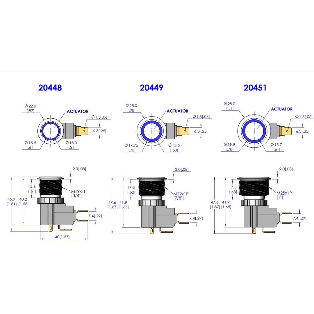 | Options | Momentary Switch - 19mm, Momentary Switch - 22mm, Momentary Switch - 25mm, On/Off Switch - 19mm, On/Off Switch - 22mm, On/Off Switch - 25mm |