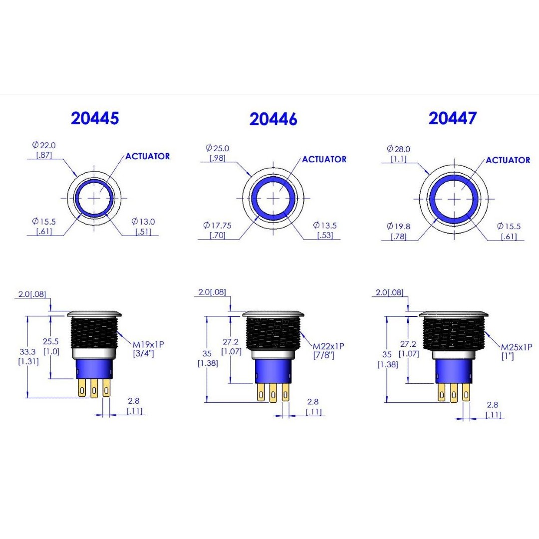 | Options | Momentary Switch - 19mm, Momentary Switch - 22mm, Momentary Switch - 25mm, On/Off Switch - 19mm, On/Off Switch - 22mm, On/Off Switch - 25mm |