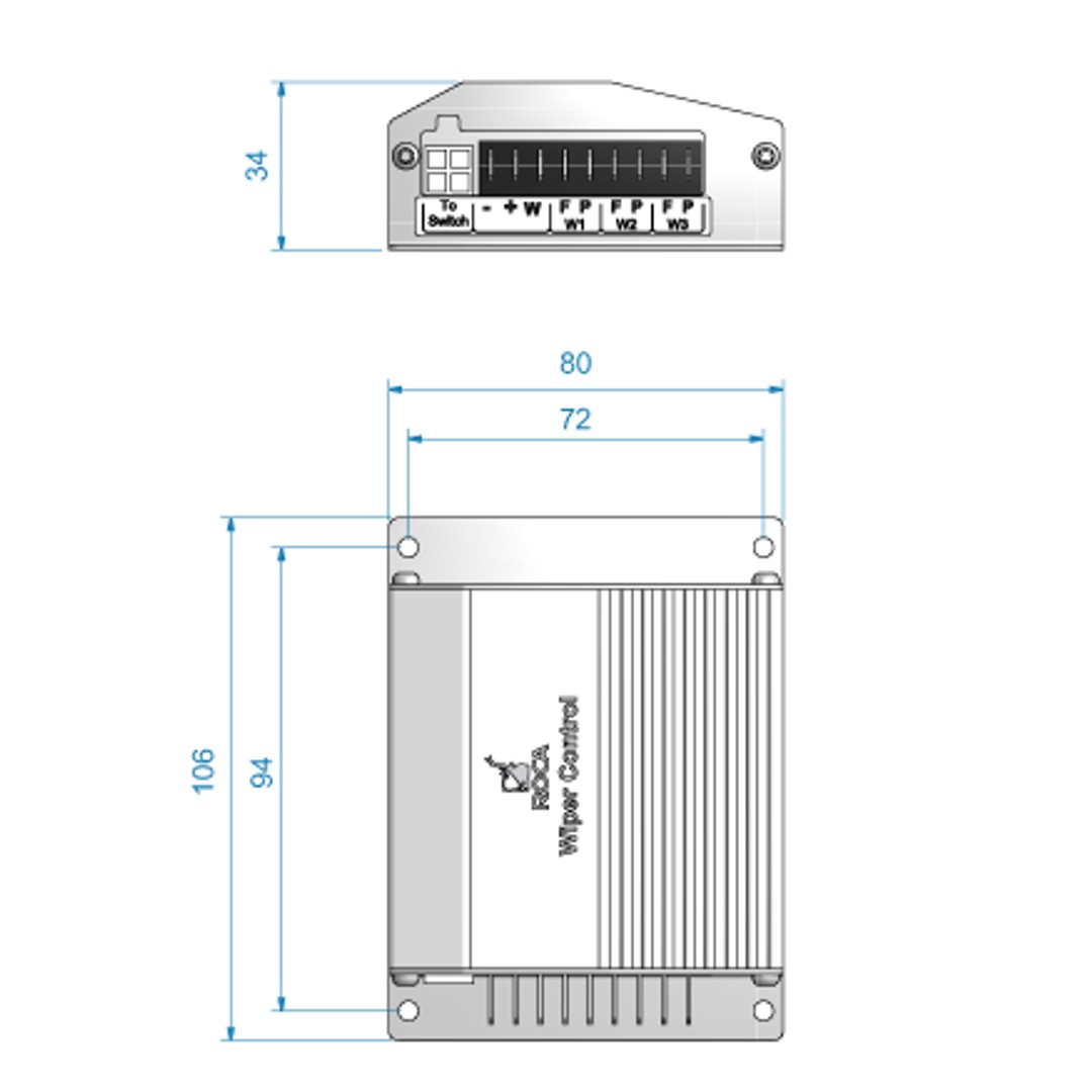 Now you can master up to 3 W10 or W12 Roca wiper motors with this small and reliable wiper control box.