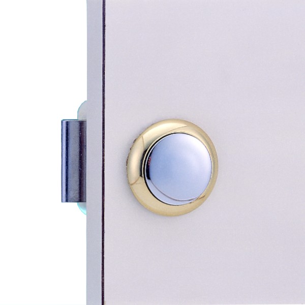10-17782 - Cabinet Rim Latch - chrome plated brass button & brass ring