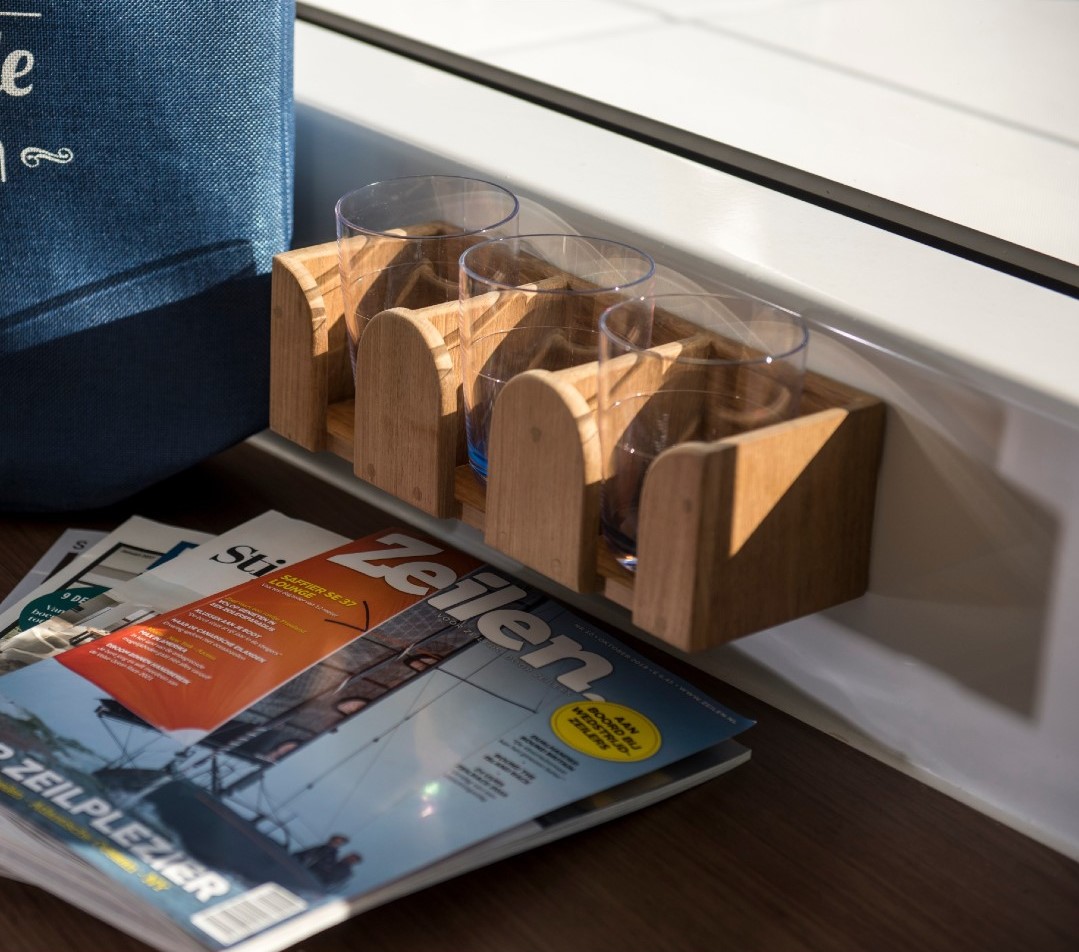 Beautifully made, this holder is suitable for safely & securely holding all your mugs on board. This is the perfect holder to have all your most used mugs close by when making drinks for family & friends. Also, by wall mounting our Solid Teak 3 Mug Holder, it saves you valuable cupboard/worktop space as well. Perfect for use not just on board, but at home in the kitchen as well! Dimensions - 29.5cm x 10cm x 9cm