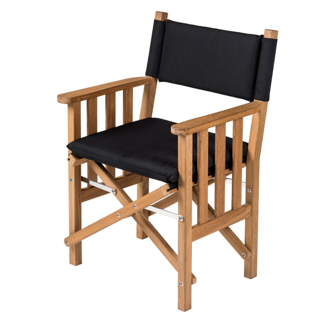 Solid Teak Directors Chair II with Black Cushion