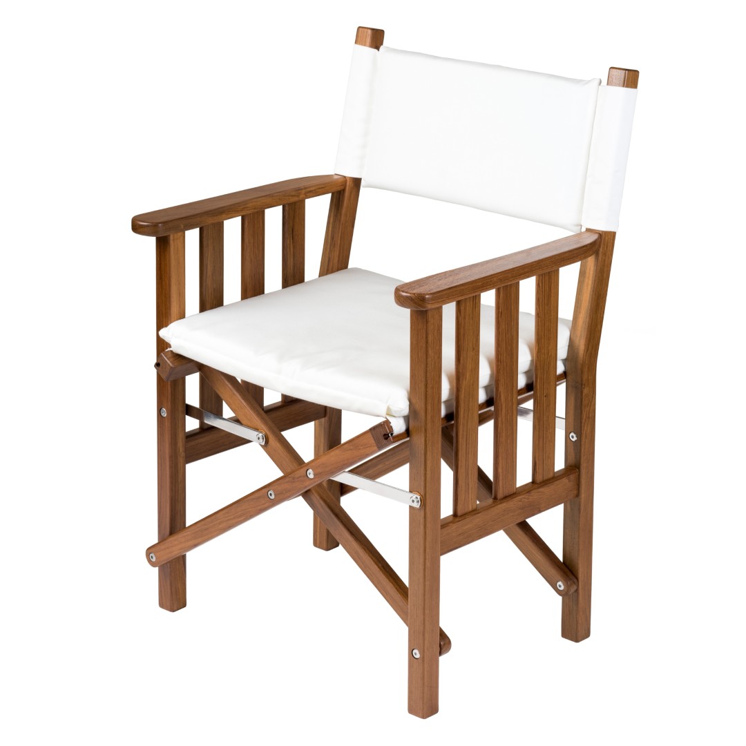 Solid Teak Directors Chair II with White Cushion