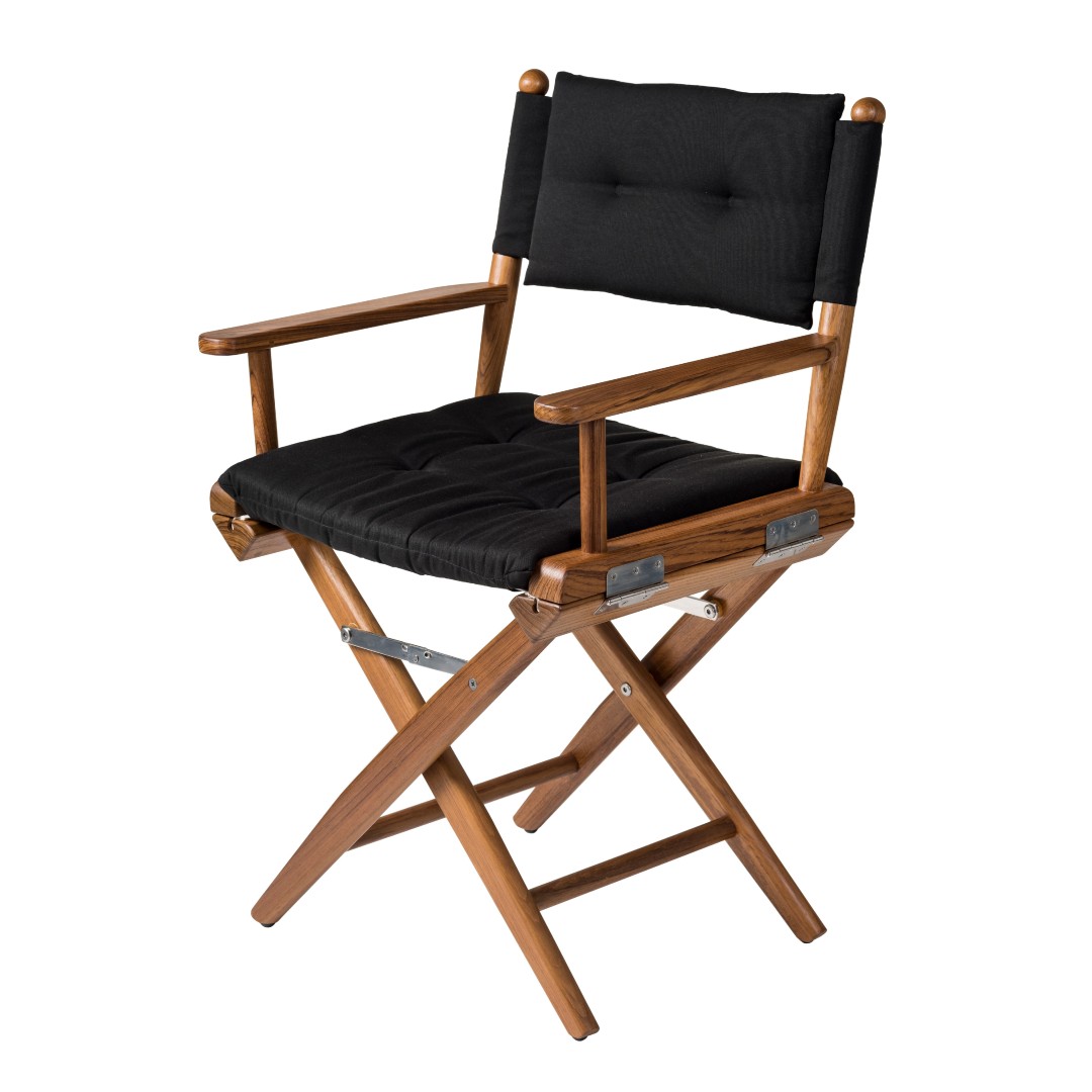 Solid Teak Directors Chair with Black Cushion | Oiled
