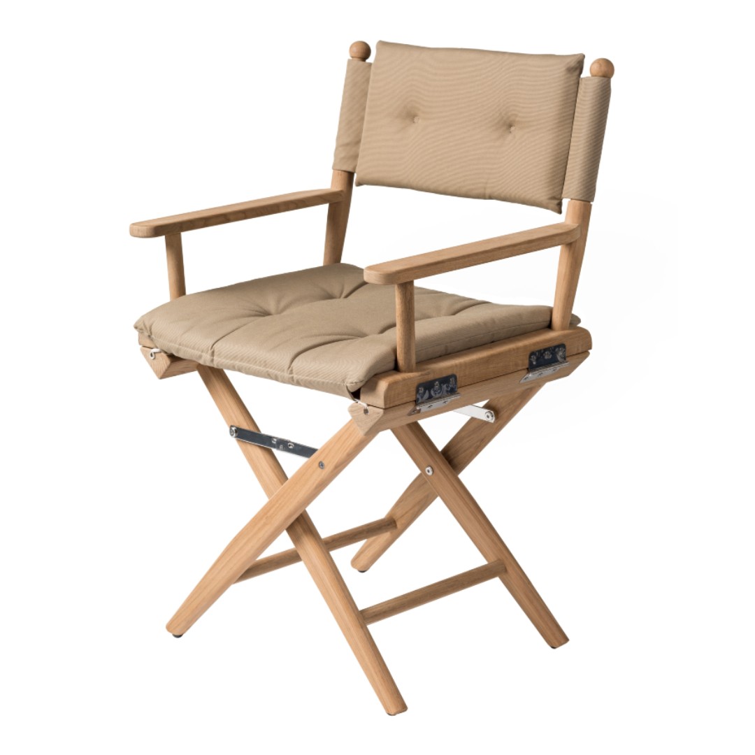 Solid Teak Directors Chair with Forza Beige Cushion | Un-Oiled