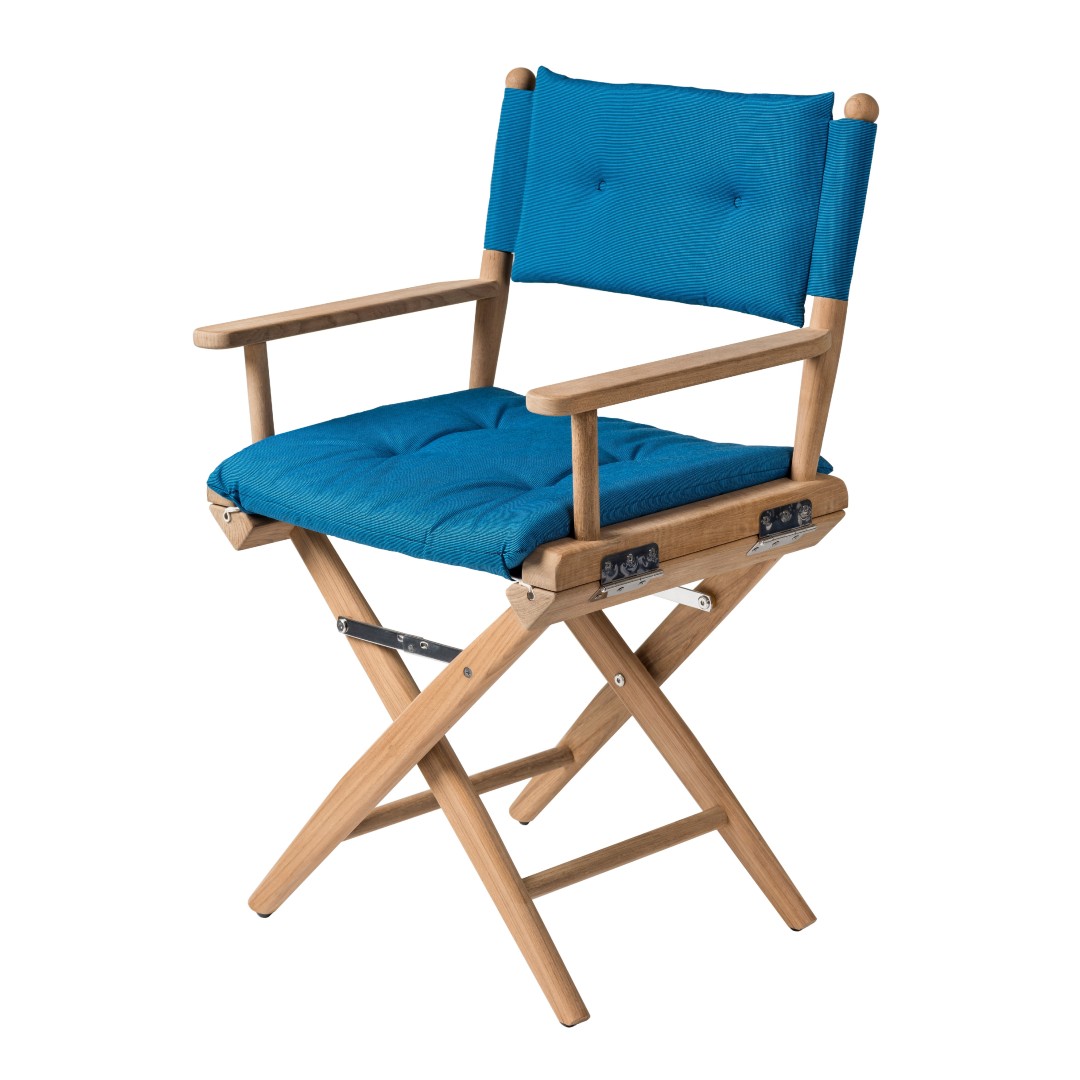 Solid Teak Directors Chair with Forza Blue Cushion | Un-Oiled