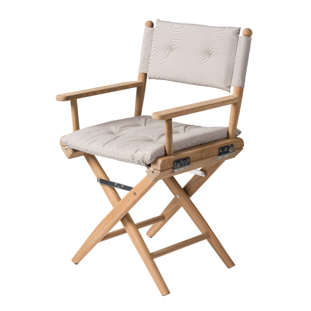 Solid Teak Directors Chair with Forza Sand Cushion | Un-Oiled