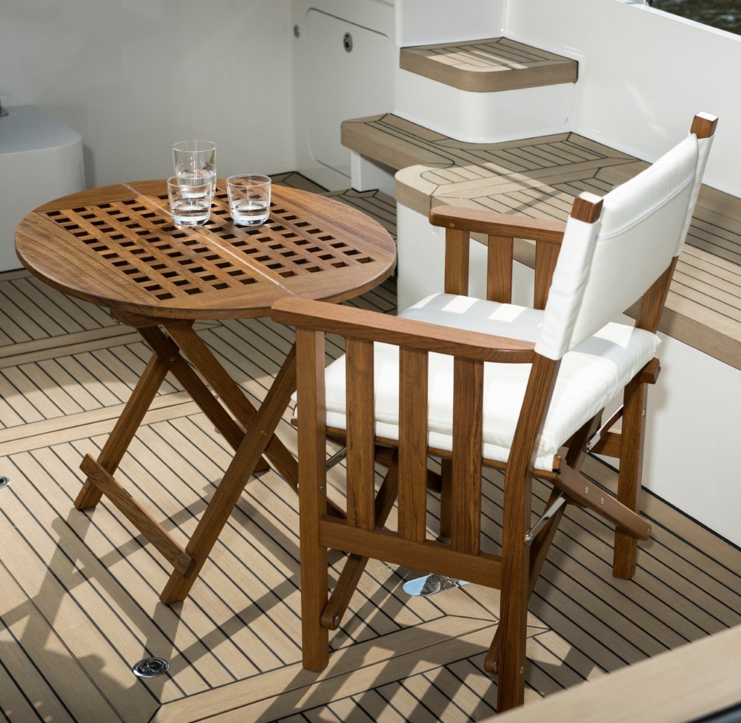 Our Solid Teak Venezia table is a great addition to your vessel. Useful next to our Director Chairs to place your drinks, snacks and reading material. Furthermore, it's even big enough to sit comfortably and enjoy a meal. The Venzia can be folded, because of this and its lightweight design, it makes this table incredibly easy to carry and store on board.