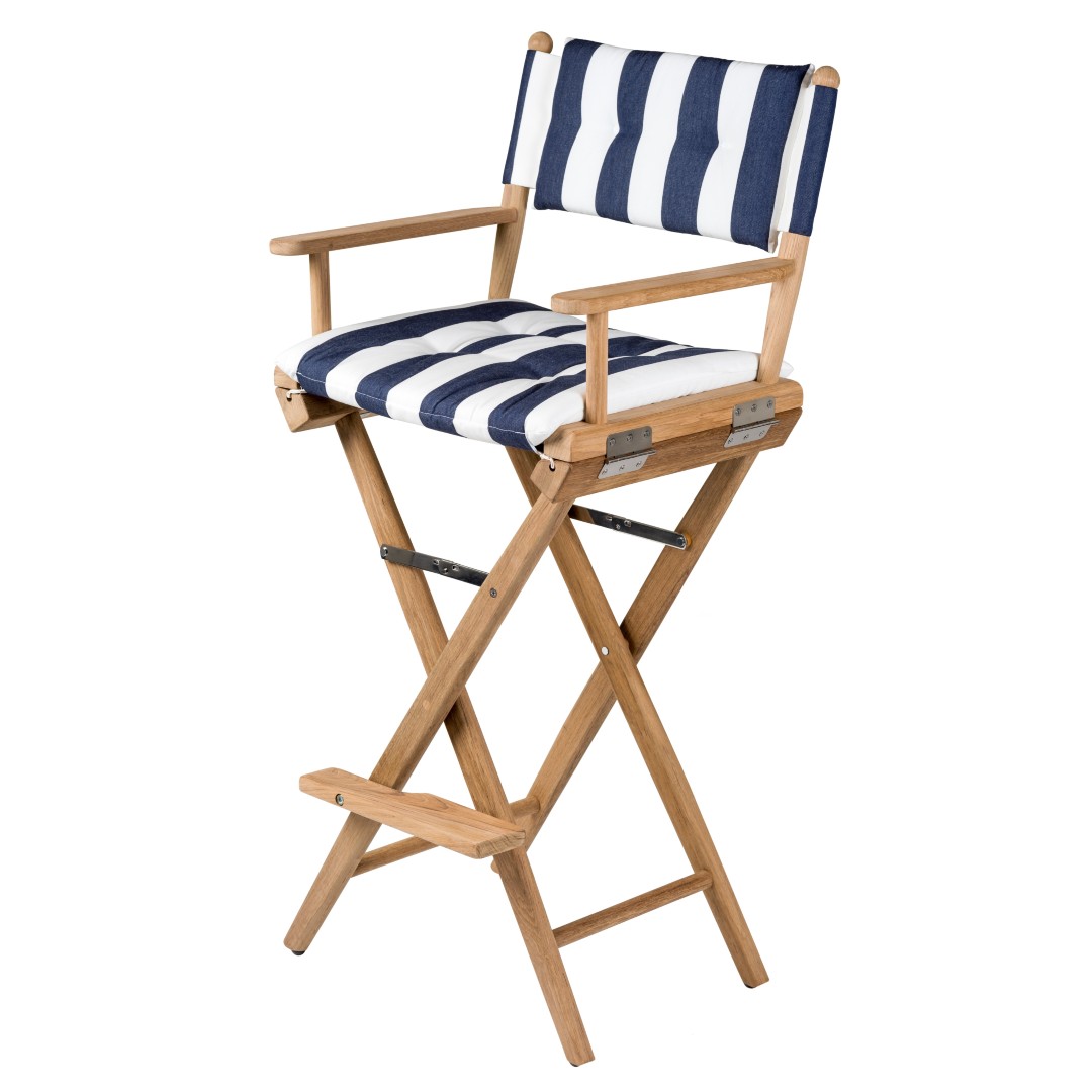Solid Teak Helmsman Seat with Navy/White Cushion