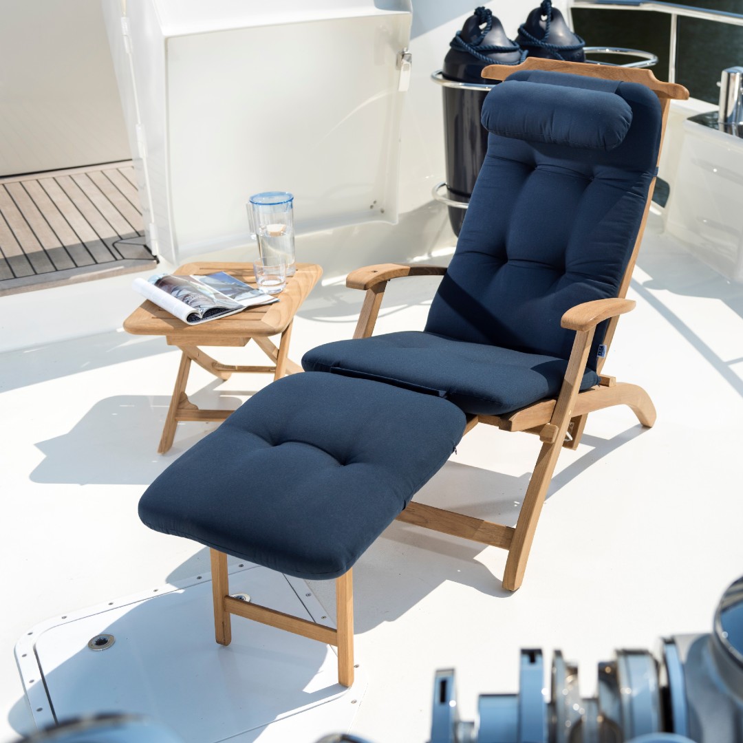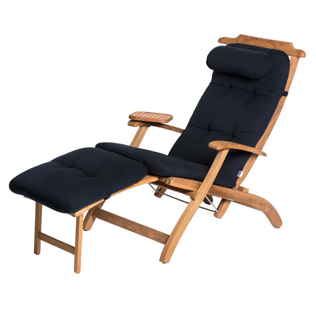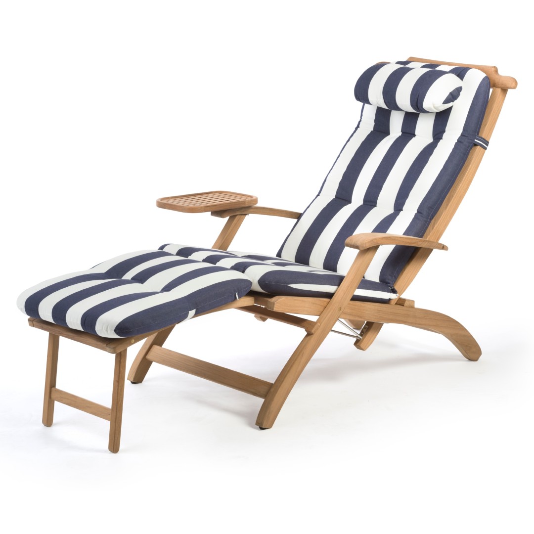 Based on the chairs originally found on the first class decks of famous cruise liners. This is one of our more practical pieces of furniture, making it a must have for on-board.