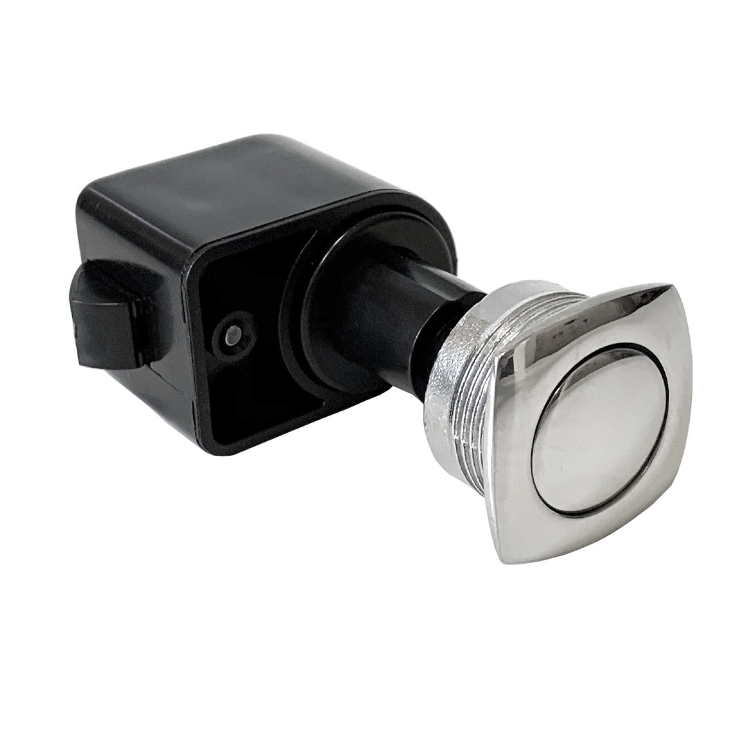 Slam action latch with strike and spacers included. Plastic body with marine grade 316 stainless steel button.