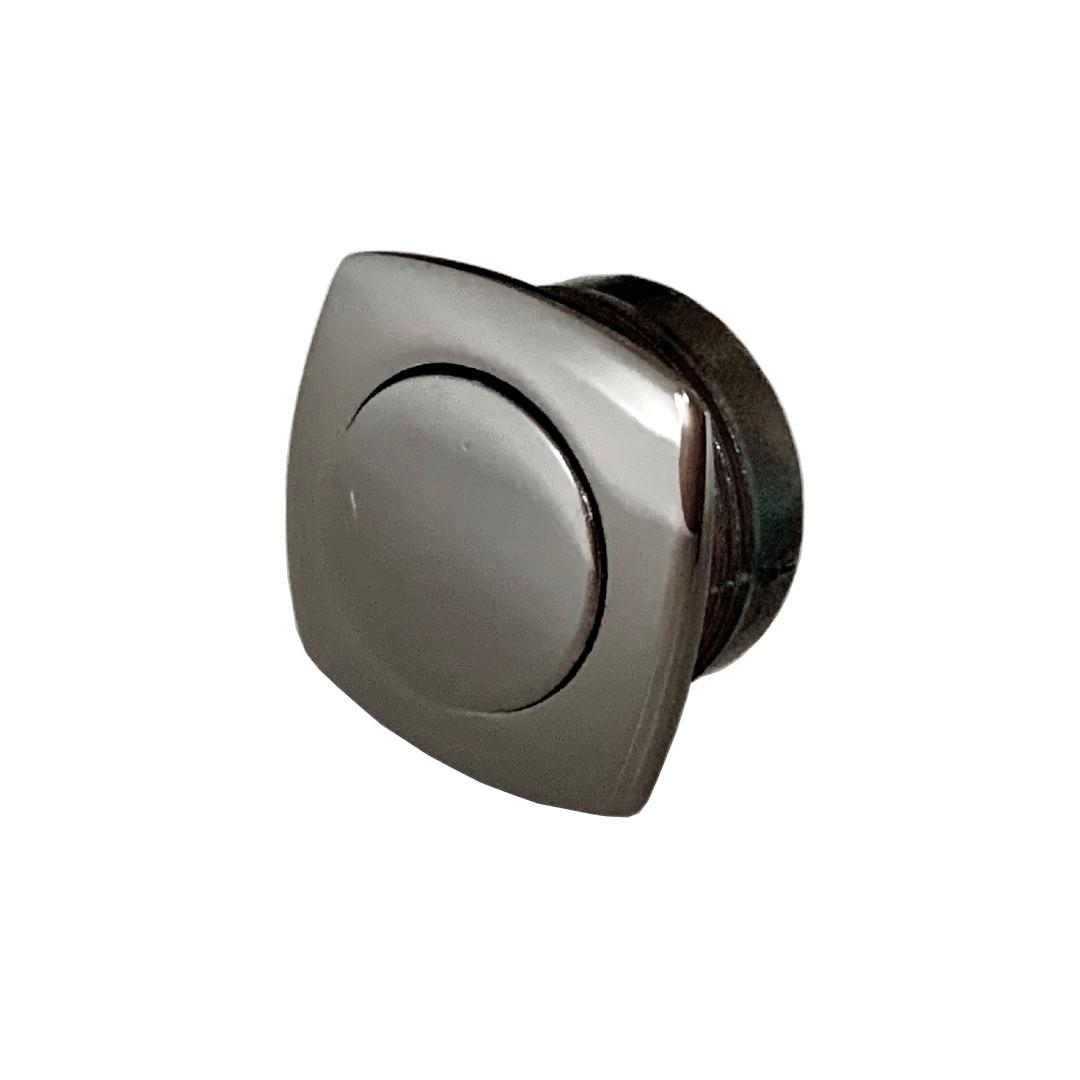 A pull to open mechanism allows doors to be shut closed even when the knob is flush. Simply push the button to activate / de-activate the lock & pull to release.