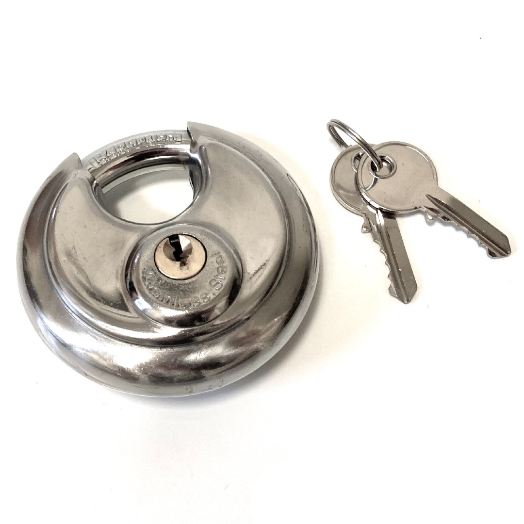 Stainless Steel Disc PadlockDisc padlock with stainless steel body, hardened steel shackle and brass barrel. Supplied with two keys. 70mm Diameter, 9.5mm shackle.AdditionalAdditionalBrand10/10A - C Quip