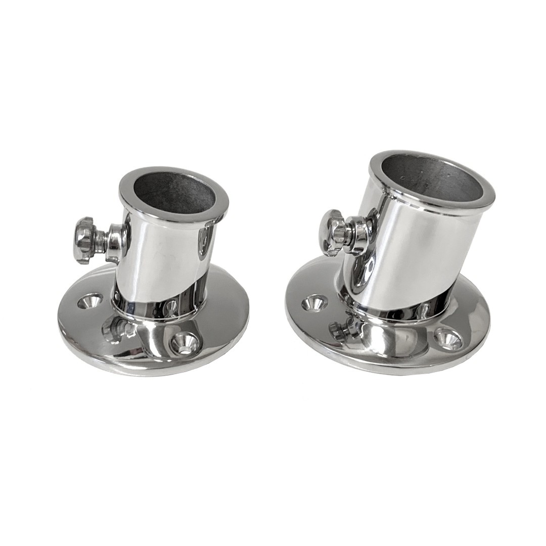 316 highly polished cast stainless steel pole socket with thumb screw. Available in two different sizes.