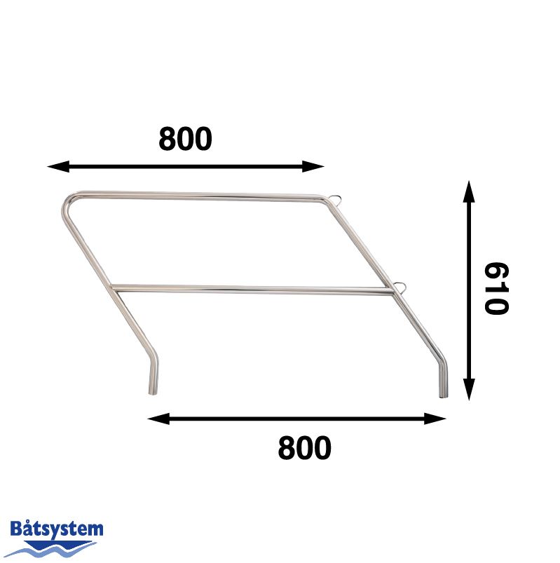 Stainless Steel Pulpit Pair 800mm316 Stainless steel pair of pulpits. Cupped foot, suitable for welding onto bowsprits.DescriptionAdditionalDescriptionPipe dimension - Ø 25 mmHeight - 610 mmWidth bottom - 800 mmWidth top 800 mmAdditionalBrandBatsystem