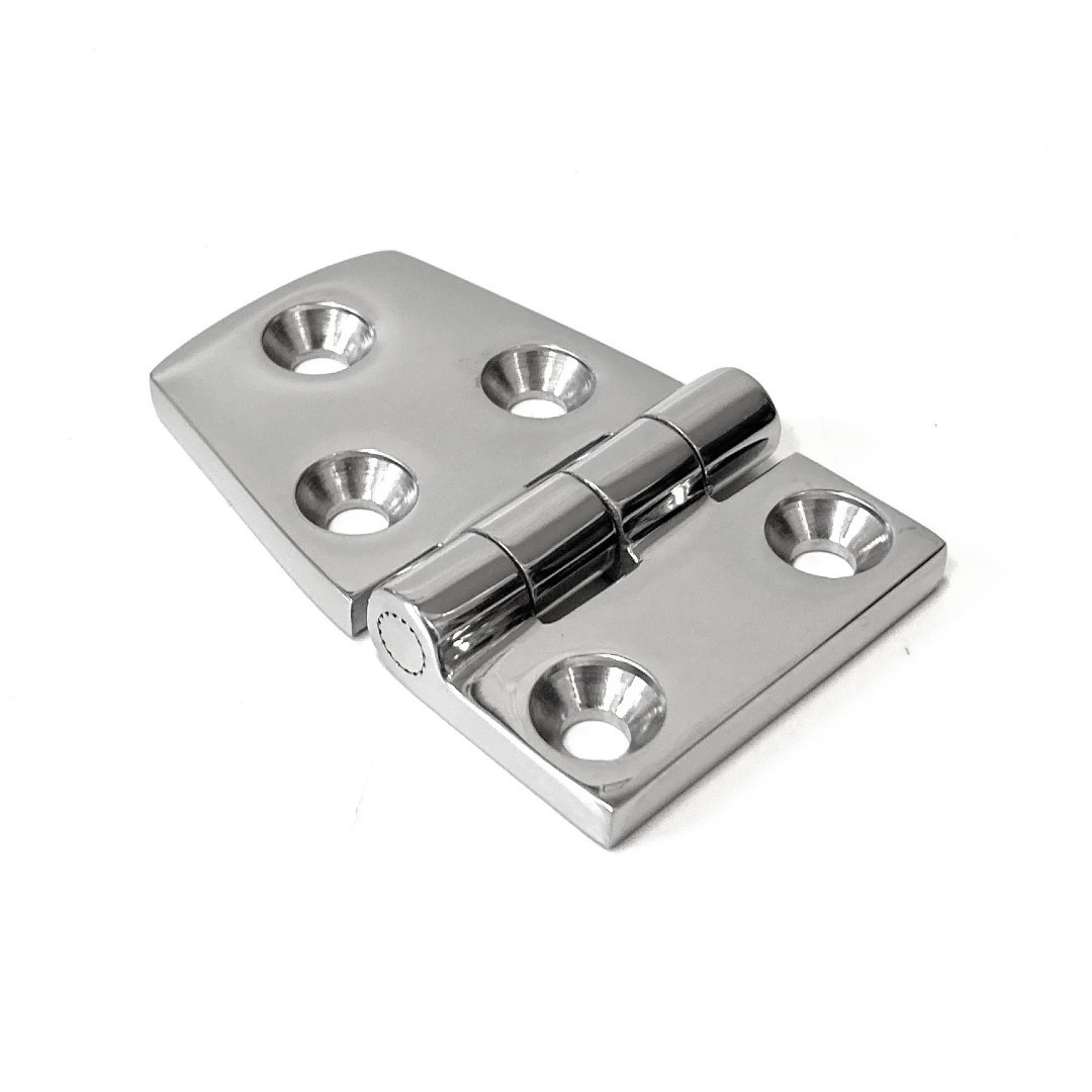 Marine grade 316 cast stainless steel sort side door hinges which are polished for an elegant finish. Available in two different versions.