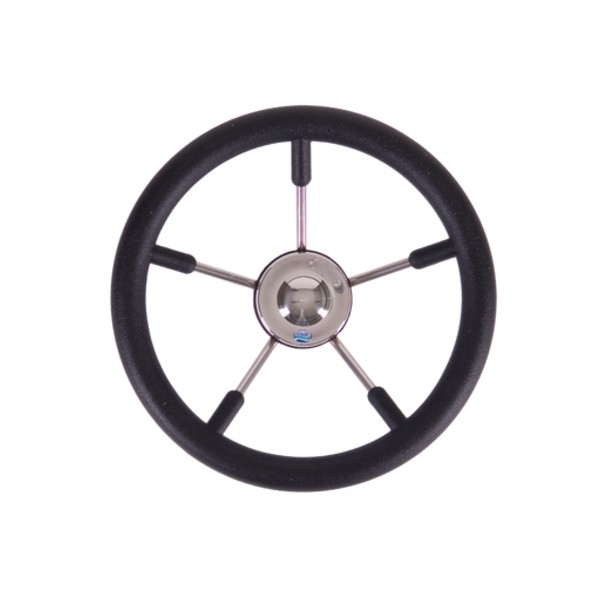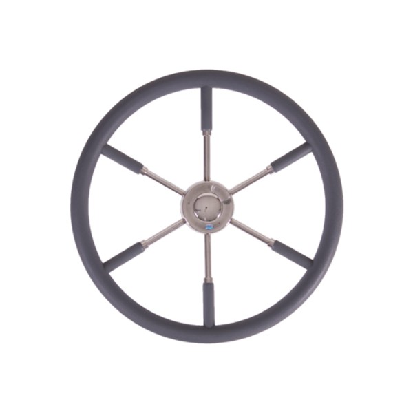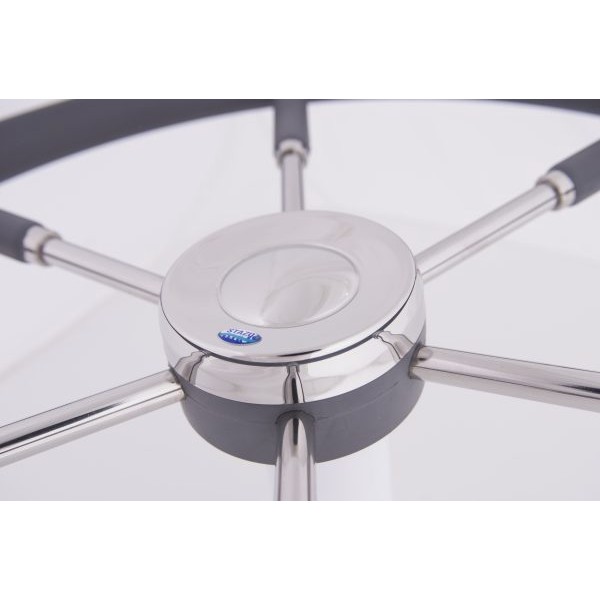 Stainless Steel Stazo steering wheel with soft grip polyurethane cover. Available in 5 different sizes with either 5 or 6 spokes with a grey, white or black polyurethane cover.