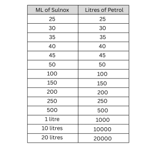 For petrol: Use 1ml per 1 litre of fuel (1:1000).