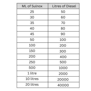 For diesel: Use 1ml per 2 litres of fuel (1:2000).