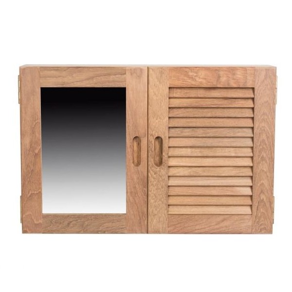 Teak Bathroom Cabinet with Louvre & Mirror Door