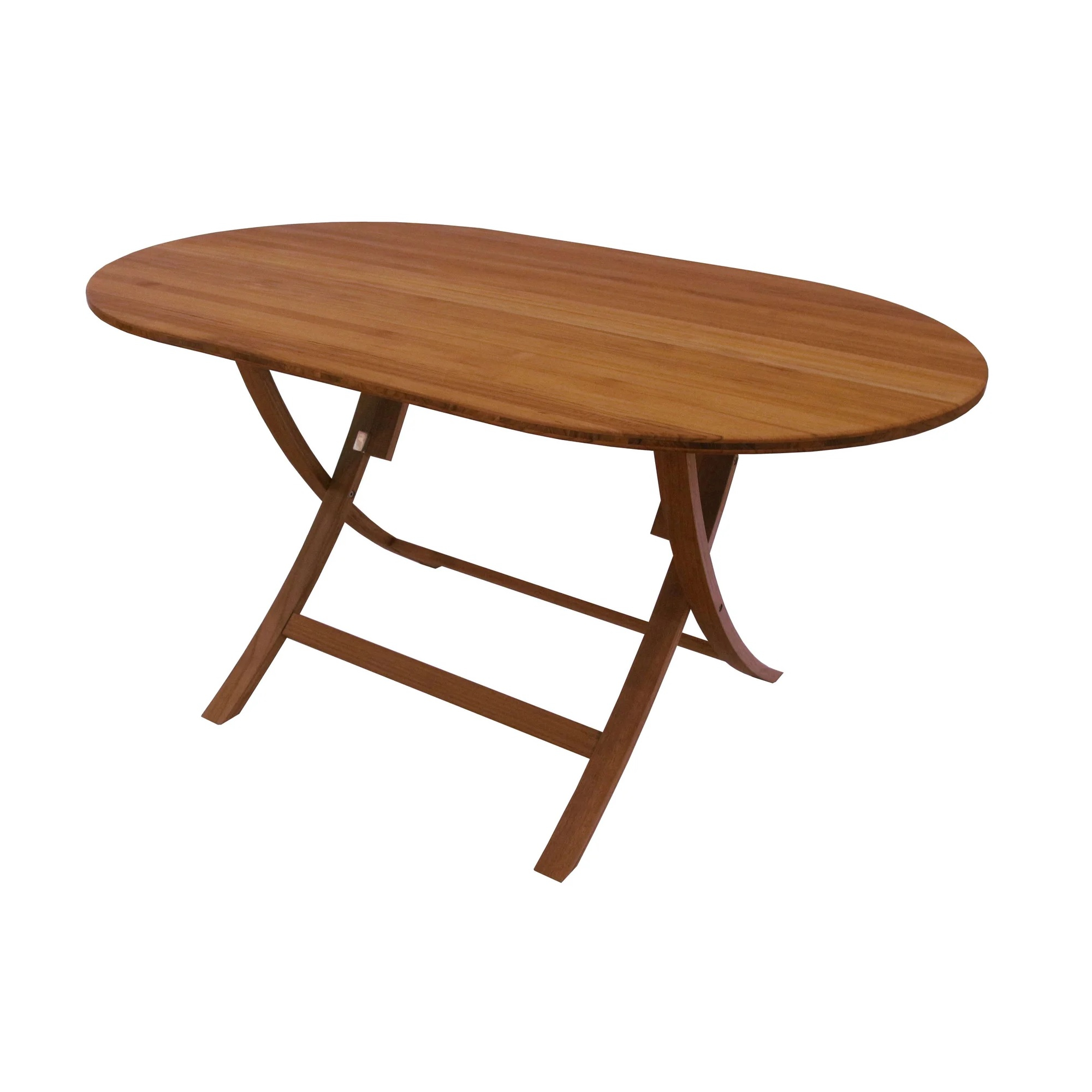 These teak folding oval tables with laminated tops are produced of first grade teak that is selected from high quality plantations and high quality stainless steel.