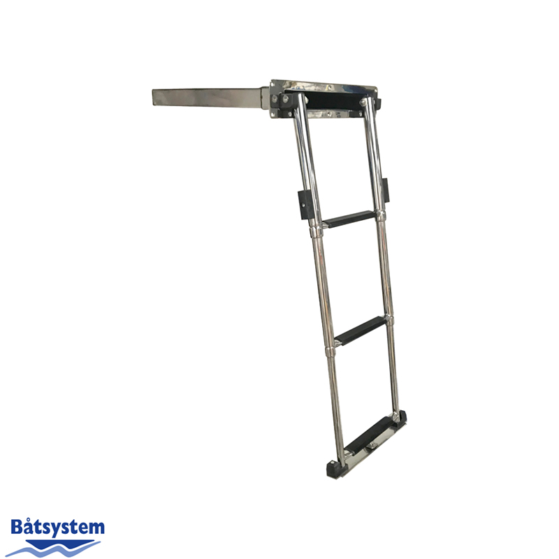 Telescopic ladder in a box, designed to be mounted on the transom. An easy to reach, easy to use telescopic ladder that simplifies disembarking.