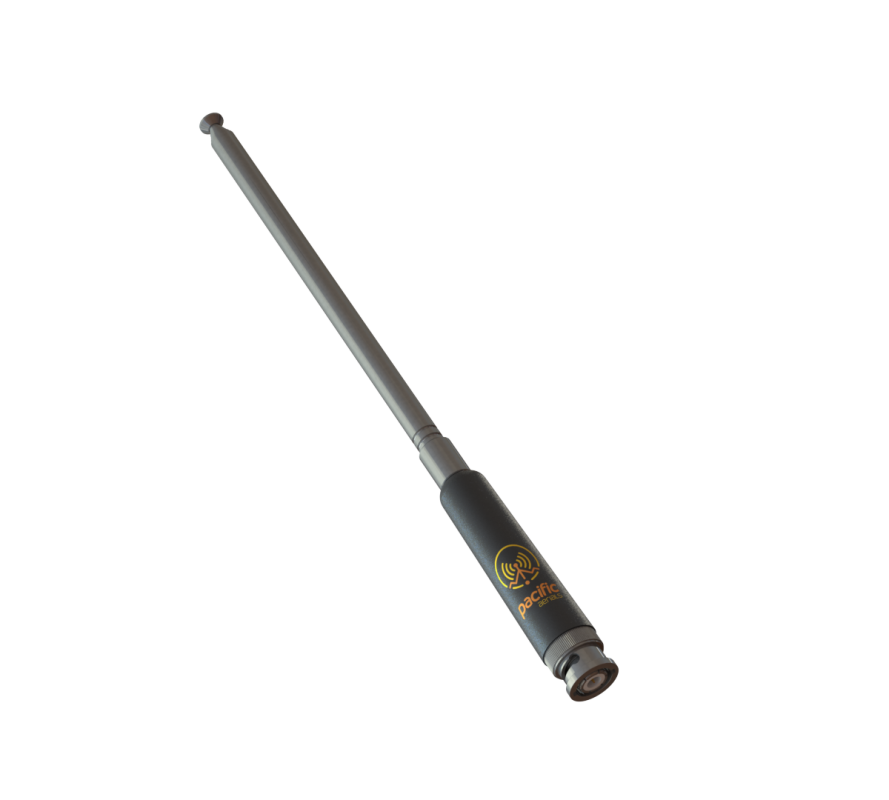 Marine VHF 1.0m telescopic antenna for portable radios. Made with either BNC, TNC or SMA connector. Specify when ordering. The telescopic whip extends to 935mm making the antenna a fully operating half wave. Designed to screw directly to your handheld radio.