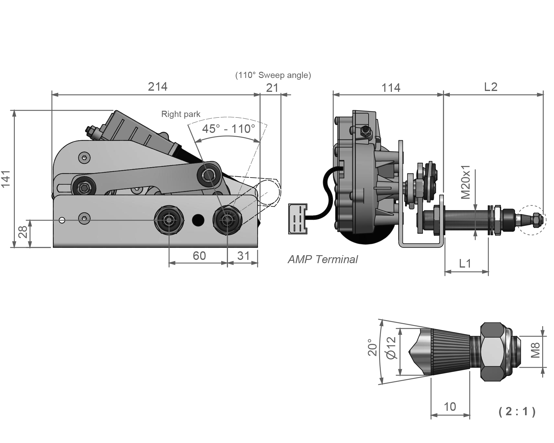 | Sweep angle | 45° – 110° | 45° – 110° |