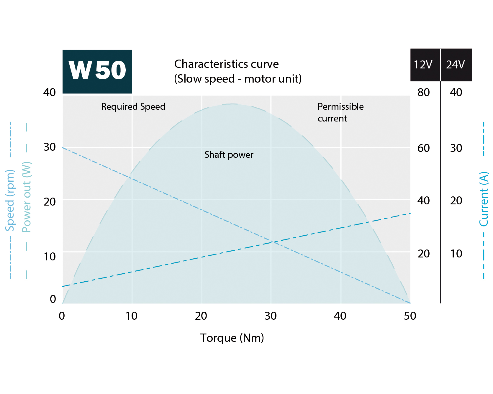 | Stall Characteristics – Slow | 50 Nm / < 40 A | 50 Nm / < 20 A |